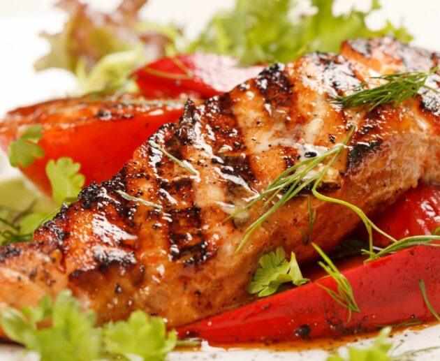فيليه السلمون المشوي مع الخضروات هو طبق صحي ولذيذ، يجمع بين الفوائد الغذائية العالية للسلمون الغني بالأوميغا 3 والنكهات الطازجة للخضروات المشوية. يتميز هذا الطبق