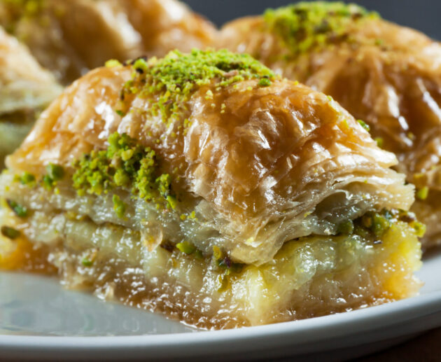 البقلاوة هي تحفة من الحلويات الشرقية، تُعرف بقوامها الهش والمقرمش، وحشوتها الغنية بالمكسرات، ونكهتها الحلوة والمعطرة بالقطر. تتكون من طبقات متعددة من عجينة الفيلو الرقيقة