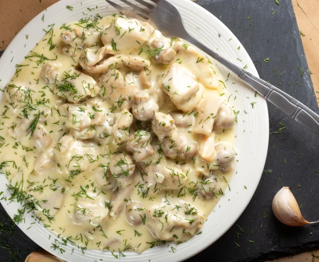 يُحضّر طبق الفطر بصوص الكريمة والثوم كمقبل دافئ أو طبق جانبي لوجبات الغداء أو العشاء. يتميز بقوامه الكريمي ونكهته العطرية.