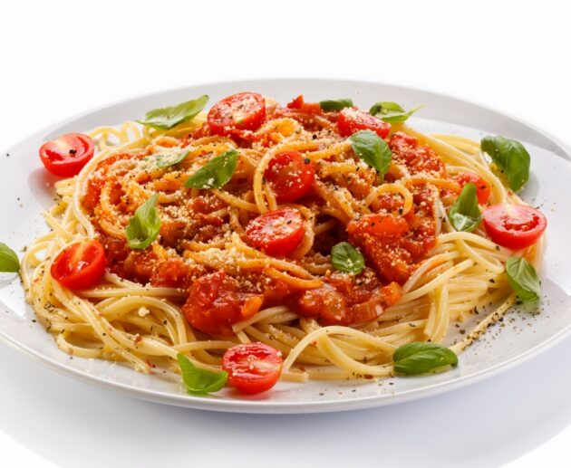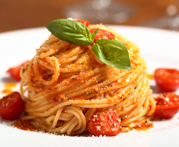 الاسباجيتي بصلصة الطماطم هو طبق إيطالي تقليدي يجسد البساطة والعمق في النكهة. يتكون هذا الطبق من معكرونة الإسباجيتي المطبوخة بشكل مثالي (“ال دينتي”)، تُقدم مع