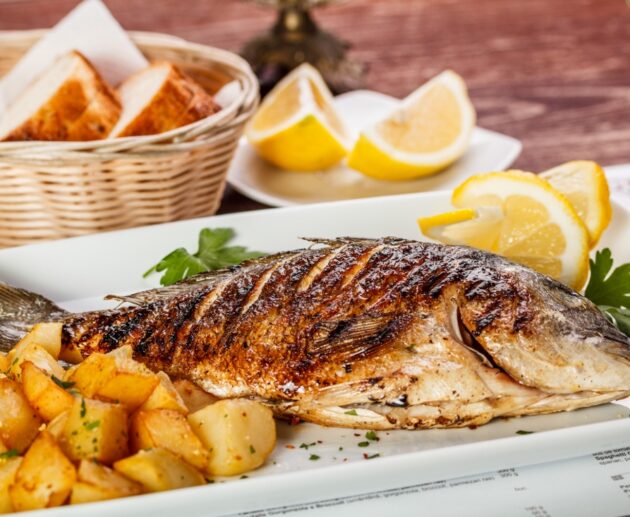 يُقدم طبق السمك المشوي الكامل مع البطاطس تجربة طعام صحية ولذيذة، تتميز بنكهة السمك الطازجة المحفوظة بفضل الشوي الكامل، وقوامه الطري من الداخل والمقرمش قليلاً