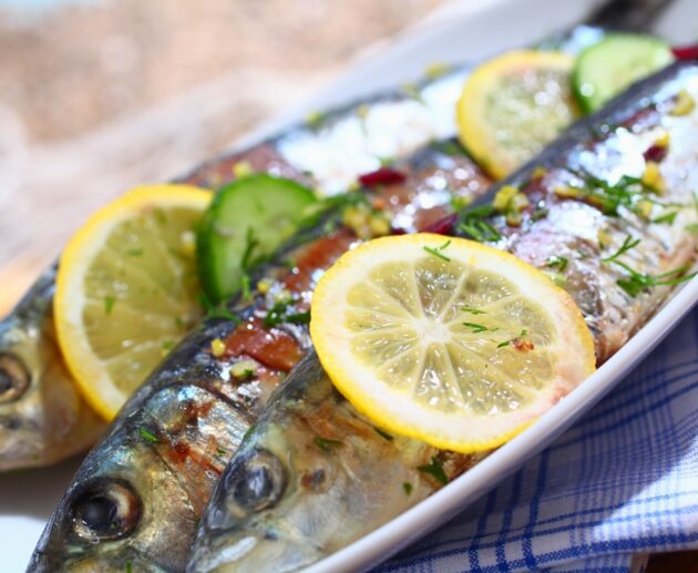 سمك السردين/الماكريل المشوي بالليمون والأعشاب