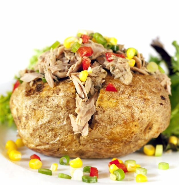 البطاطس المخبوزة بالتونة والخضروات هي وجبة صحية ولذيذة، تجمع بين نكهات البطاطس والتونة والخضروات. هذه الوصفة تُحضّر باستخدام مكونات بسيطة