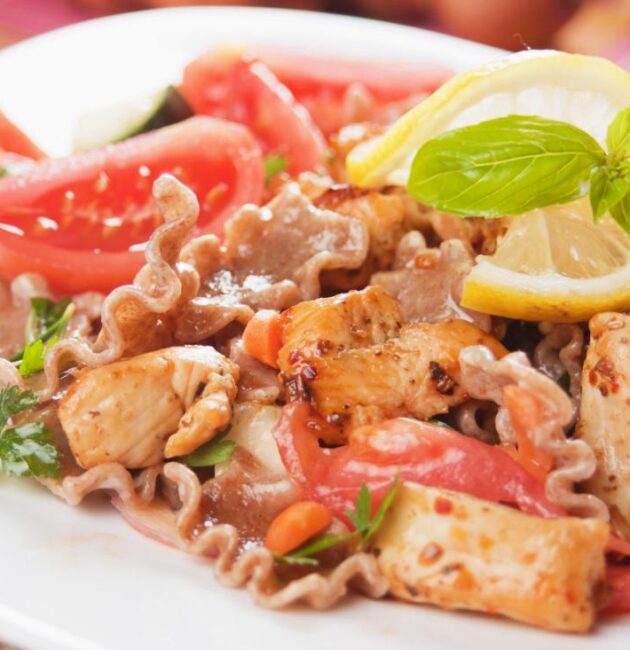 سلطة الدجاج بالخضار والمكرونة الكاملة تُعد خيارًا مثاليًا لوجبة غداء أو عشاء صحي. تجمع بين البروتين، الألياف، والفيتامينات، وتُشبع بدون