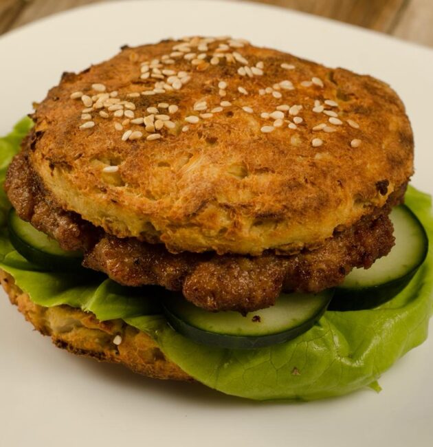يُعد هذا البرغر خيارًا غذائيًا مناسبًا لمتبعي نظام الكيتو، حيث يتم تحضيره باستخدام خبز مُعدّ من القرنبيط بدلاً من الخبز