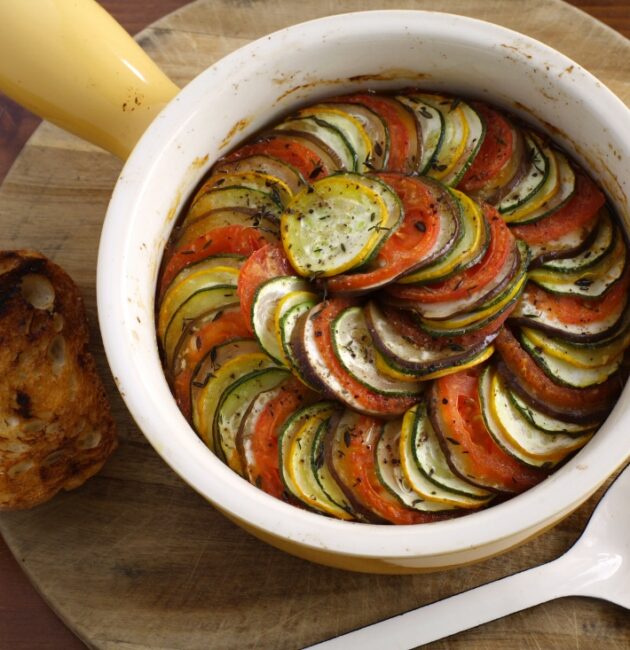 كونفي بيالدي هو طبق فرنسي أنيق ومبتكر يعتمد على الخضروات الموسمية. يُعتبر تطورًا عصريًا لطبق الراتاتوي التقليدي، حيث يتميز بترتيب
