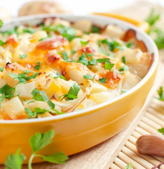 صينية البطاطس بالجبن هي طبق غني ودسم، مثالي كطبق جانبي فاخر مع اللحوم أو الدجاج، أو كوجبة مستقلة لذيذة. مزيج