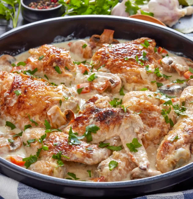 ستروغانوف الدجاج هو طبق غني ودسم يجمع بين المذاق الكريمي ونكهة الفطر المميزة. يتميّز بسهولة التحضير وبمذاقه الفاخر، ما يجعله