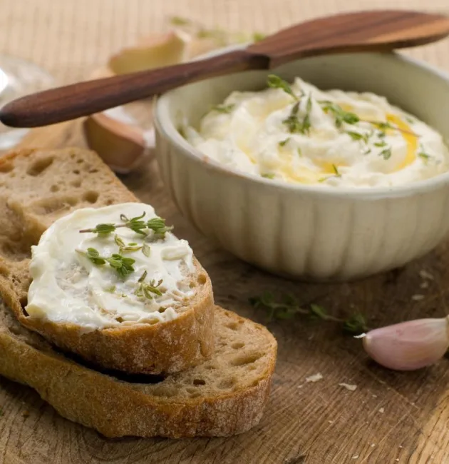 ُيعتبر الثوم المحمص مع خبز العجين المخمر من الصوصات الكريمية الغنية بالنكهة، ويُقدَّم عادةً كمقبل أو طبق جانبي مع خبز