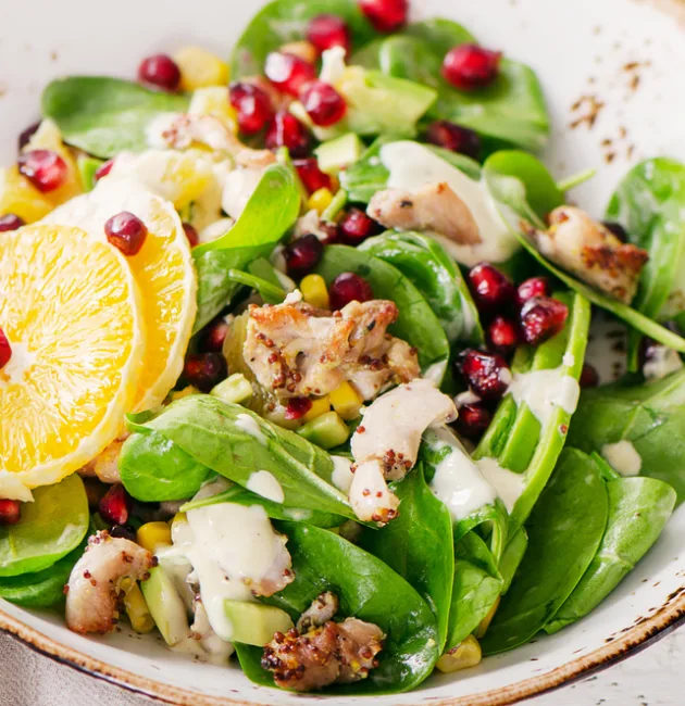 سلطة السبانخ بالدجاج والبرتقال