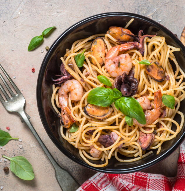تُعد الباستا بالمأكولات البحرية طبقًا فاخرًا وشهيًا، يجمع بين المكرونة المطبوخة بإتقان والنكهات الغنية للمأكولات البحرية الطازجة. يتميز هذا الطبق